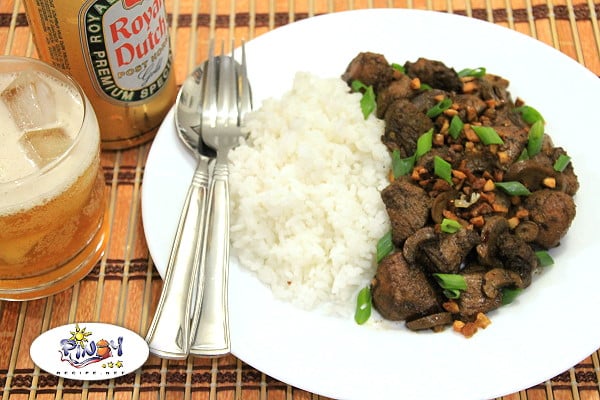 This much-beloved delicacy is traditionally made by sautéing small cubes of beef sirloin with garlic and olive oil. Then soy sauce or Worcestershire sauce is often added for flavor.