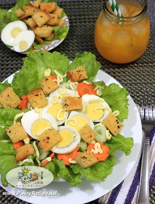 Egg Lettuce Salad with Garlic Herb Croutons Recipe is super tasty and incredibly satisfying meal. This healthy salad can be varied to use whatever fresh vegetables are available. Try halved cherry tomatoes, broccoli florets, strips of sweet pepper, thinly sliced apples, or whatever you prefer.