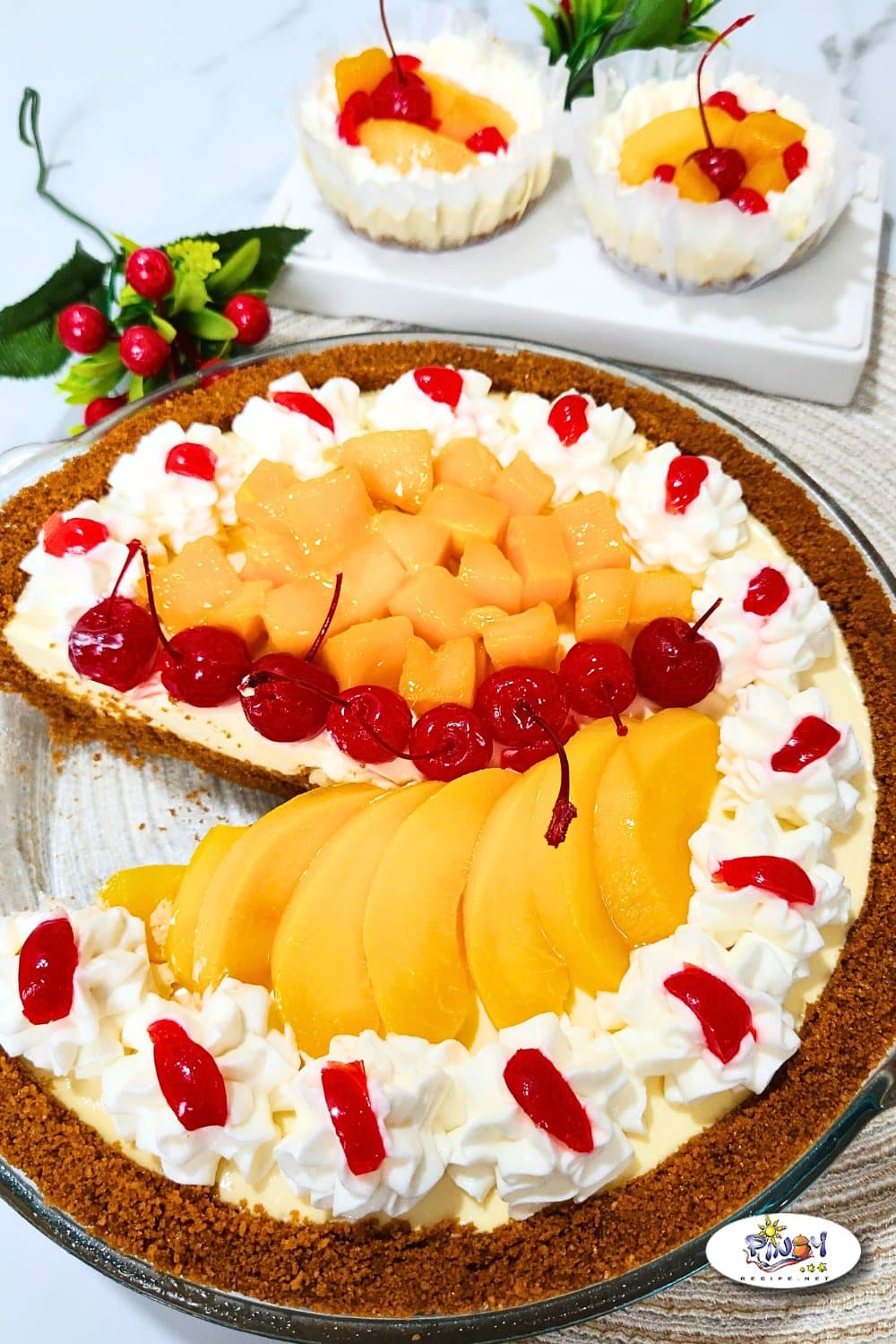 Our No-bake Peach Mango Cream Pie Recipe is a delicious and easy-to-make dessert that is perfect for birthdays or other occasions. The crust is made from crushed graham crackers, butter, and sugar and is then filled with a creamy mixture of all-purpose cream, whipped cream, gelatine and condensed milk.