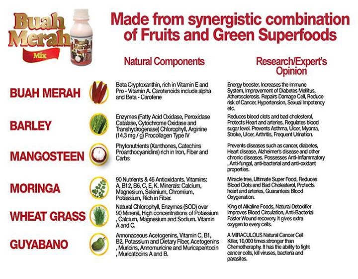 Buah Merah Mix is a perfect food supplement. It cures almost everything! This is a miracle food. Try it.